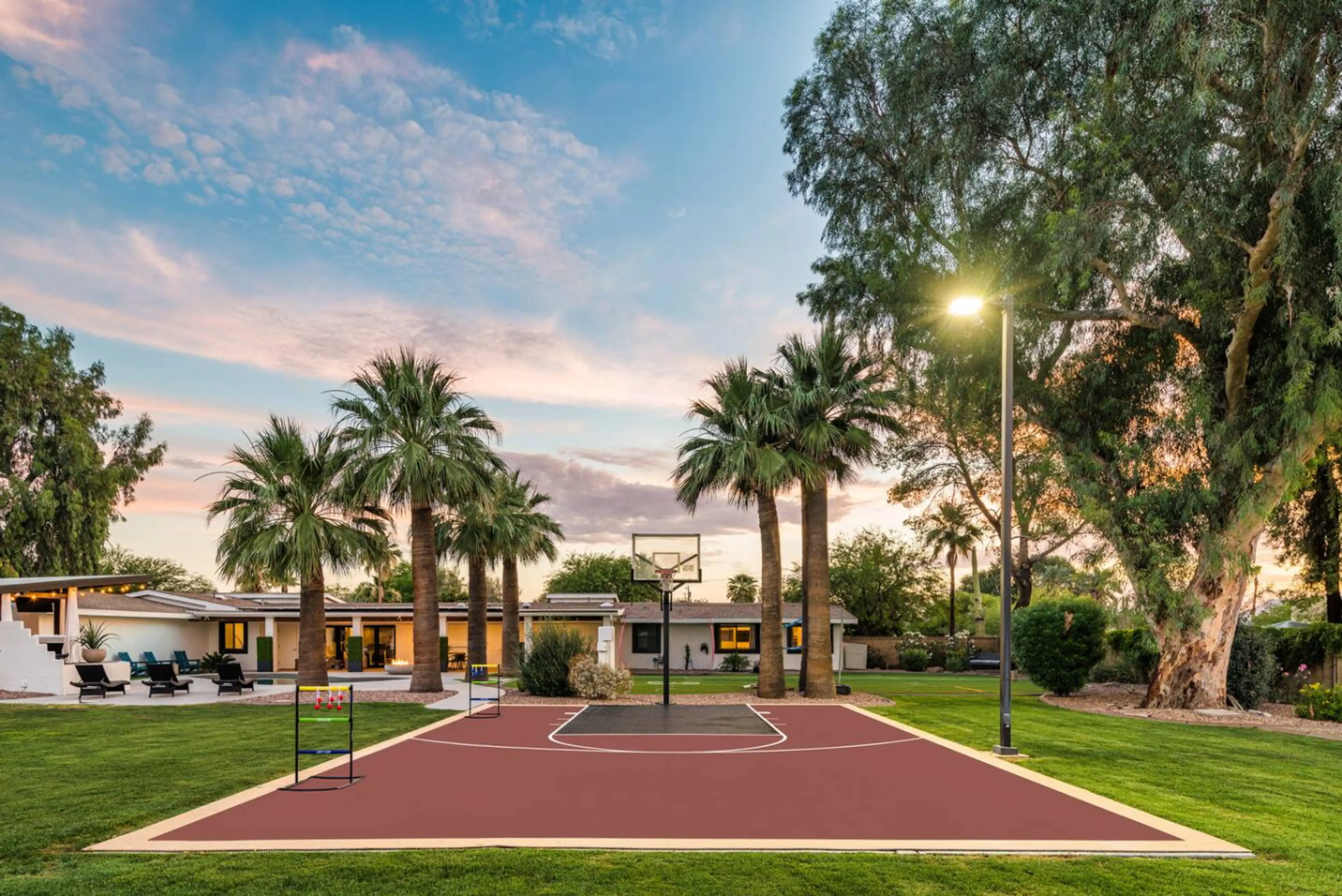 Great location, close to great shopping and restaurants. Only 7 minutes to Scottsdale airport and 22 to PHX. Home is laid out great with large great room / arcade, quiet living room off the kitchen and bedrooms have their own bathroom (mostly) and many beds / sleeping arrangement options. Yard is huge with pool, volleyball, basketball and grass area for dogs to play. We used it all! Home had everything we needed and then some!! Would be great for families with small children as well.