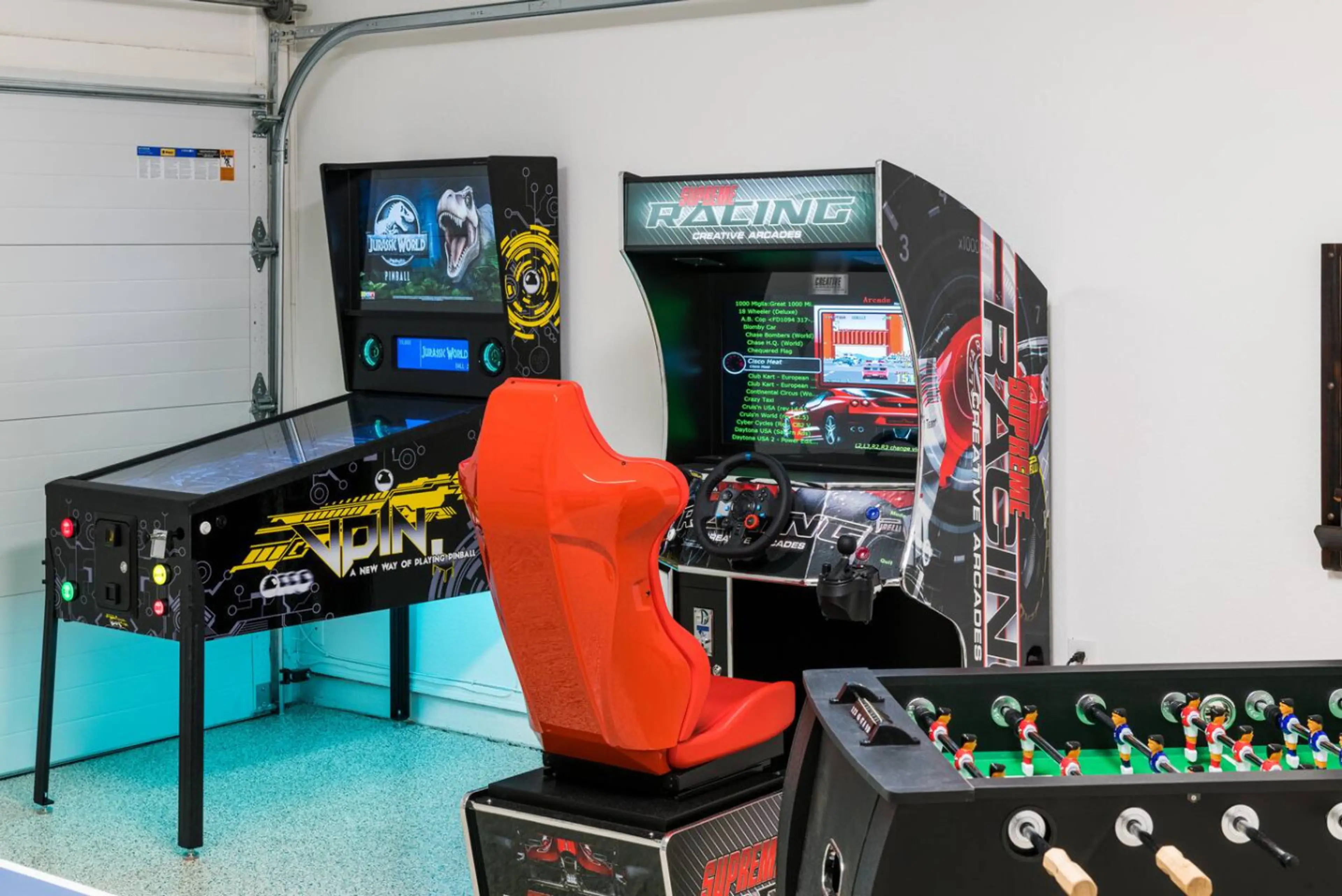 The home is new, clean and stylishly decorated. Garage turned Game room was so cool and fun! Comfortable beds, good AC, and everything you need to cook can be found in the kitchen.